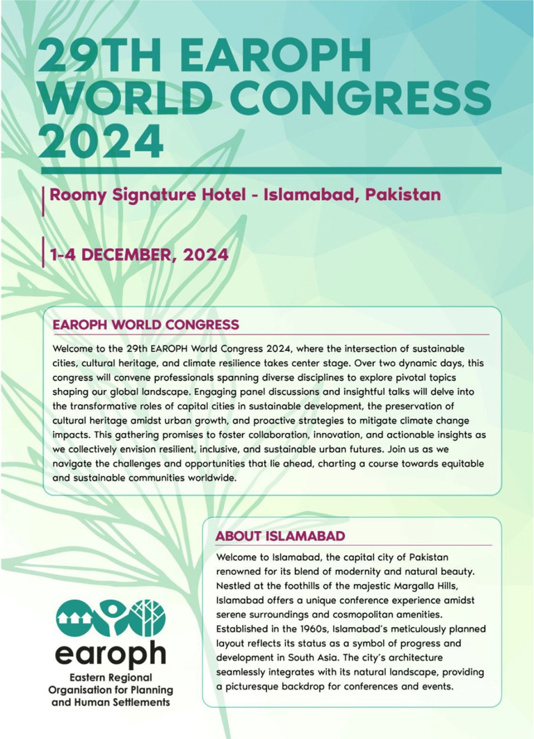 Welcome to the 29th EAROPH World Congress 2024, where the intersection of sustainable cities, cultural heritage, and climate resilience takes center stage. Over two dynamic days, this congress will convene professionals spanning diverse disciplines to explore pivotal topics shaping our global landscape. Engaging panel discussions and insightful talks will delve into the transformative roles of capital cities in sustainable development, the preservation of cultural heritage amidst urban growth, and proactive strategies to mitigate climate change impacts. This gathering promises to foster collaboration, innovation, and actionable insights as we collectively envision resilient, inclusive, and sustainable urban futures. Join us as we navigate the challenges and opportunities that lie ahead, charting a course towards equitable and sustainable communities worldwide.